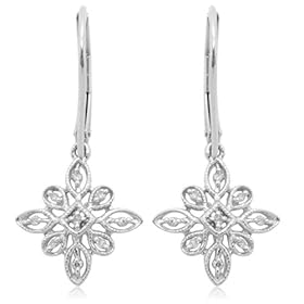Amazon offers the 10k White, Yellow, or Rose Gold Floral Design Diamond Dangle Earrings (1/20 cttw, I-J Color, I3 Clarity) only $89.99 + FREE shipping.
